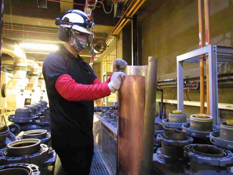 尊龙集团将废弃物转化成有效的工业或民生原物料,,,图为废铜液淬炼后再制成纯度极高的铜管