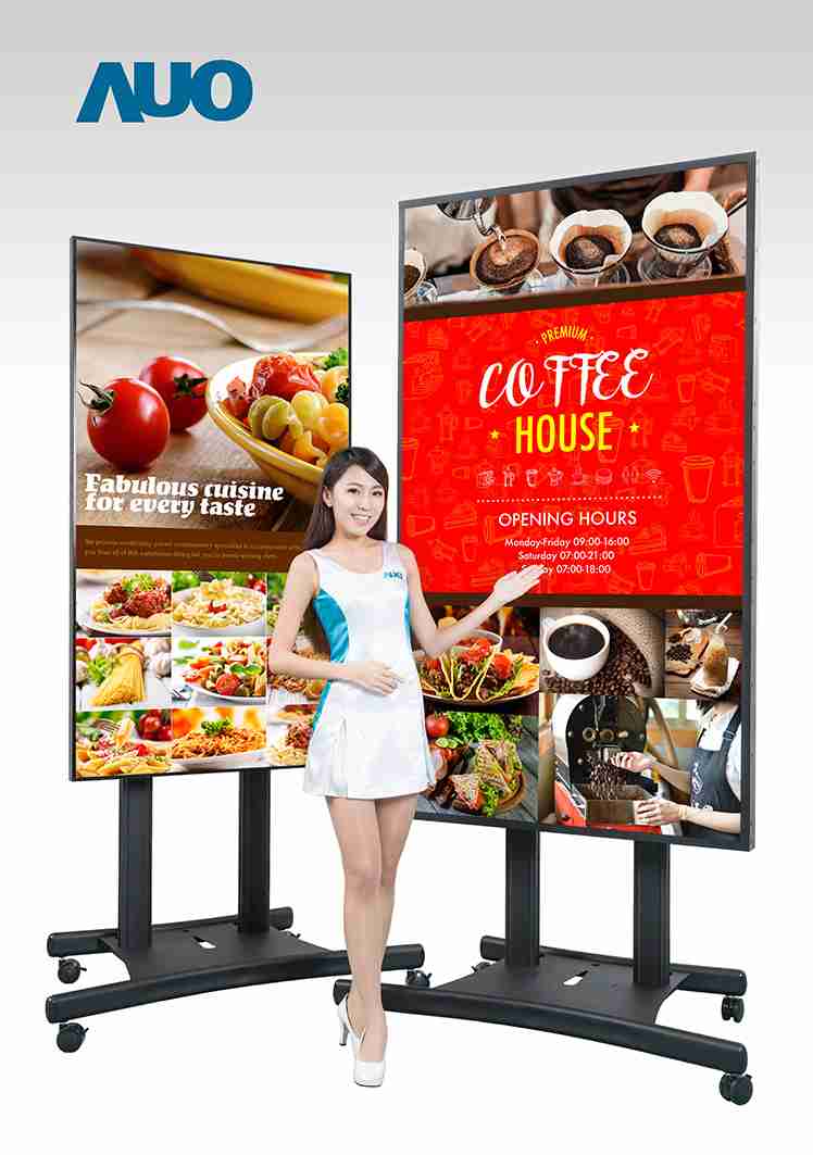 本次领先业界(*) 推出 85寸 UHD 4K 户外型超大显示器,,具备 2500 nits 超高亮度和连续开机操作的稳定性能,,在阳光直射环境下影像仍然鲜明清晰,,,,适合户外候车亭及高级精品店等广告播放使用。。55寸 Full HD 拼接墙显示器的极窄边框技术,,让相邻屏幕拼接后的边框宽度仅 1.8mm,,,能因应各种空间灵活设计为不规则拼接墙,,,搭配色彩及亮度调校技术呈现完美的画面均匀度,,打造独一无二的品牌形象广告。。。本次也将展出一系列的超宽型公共讯息显示器,,,尺寸从 28.6寸至 42寸,,,,皆具备高解析、、、高亮度、、、、高信赖性等特色,,,,可配置于半户外环境,,,,作为交通信息显示器提供旅客实时候车信息及广告讯息、、、于零售商店展示超宽型广告,,,,或打造成智能商店货架以互动感应设计呈现商品讯息,,,,增加消费者购物乐趣。。