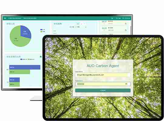 依循 ISO 国际标准建置出符合国际标准的全方位碳管理平台 (AUO Carbon Agent),,,其中温室气体盘查模组可协助客户将组织、、产品与供应链的碳排放源数据,,,,透过系统内建的系数资料库自动计算出碳排量,,提升整体盘查作业的效率,,,,并以此拟定长期减碳策略,,达到低碳转型、、、净零碳排的目标。。。